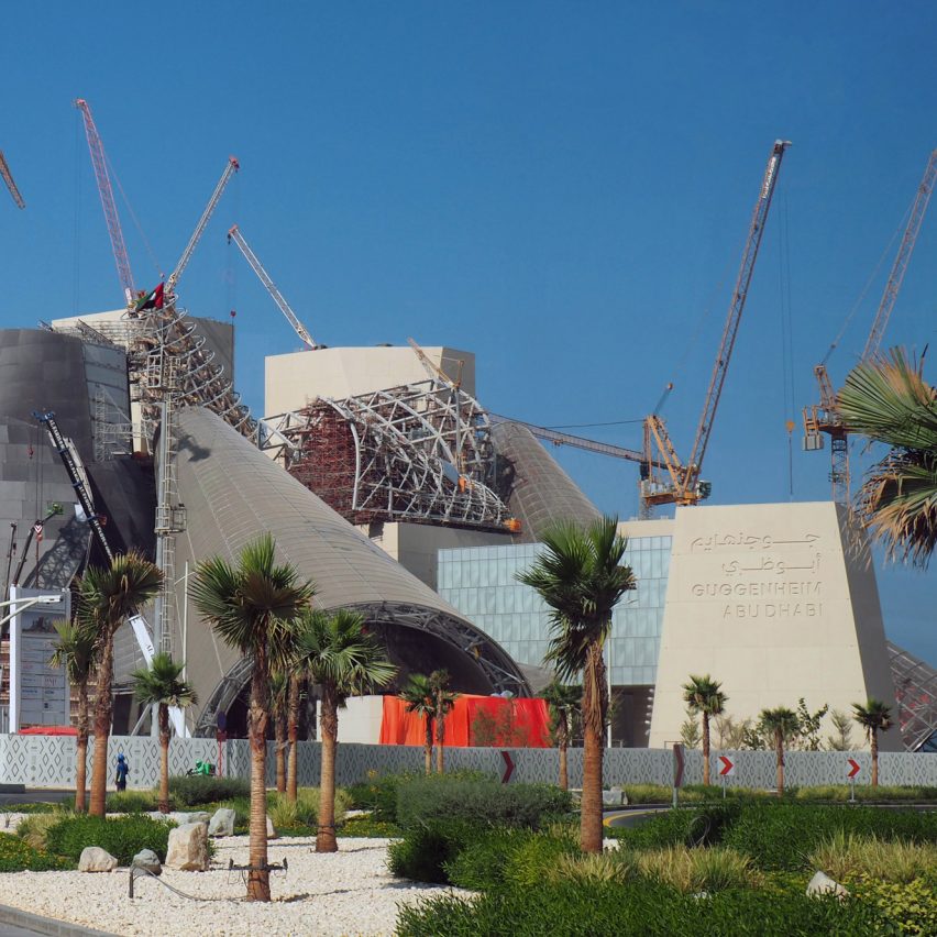 The Canadian-American architect’s last major building, the Guggenheim Abu Dhabi, has been pictured nearing completion on Saadiyat Island, UAE.