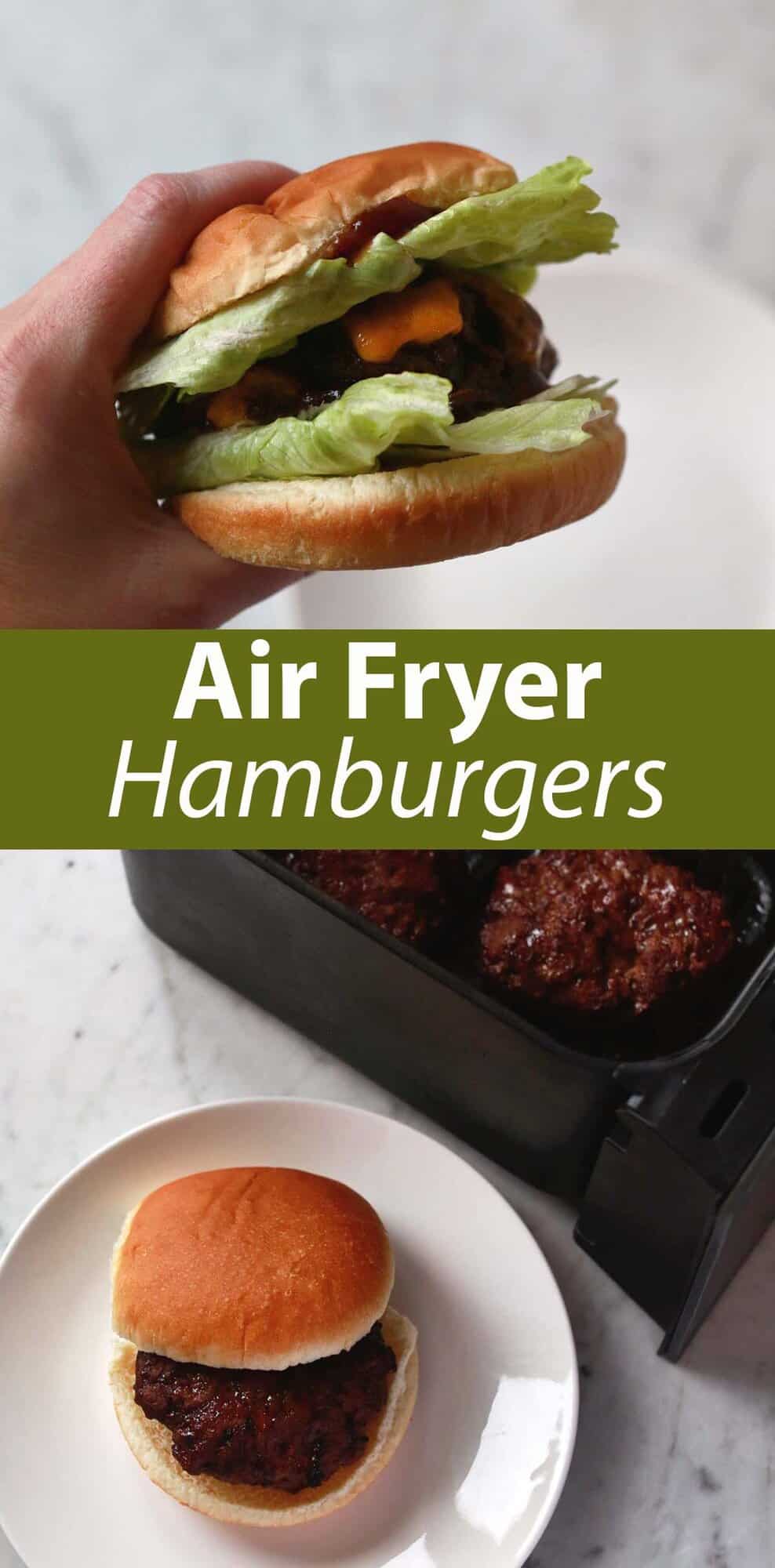 Air Fryer hamburgers are one of the meals I make for dinner over and over again at our house. This recipe only uses 5 ingredients and takes less than 15 minutes to make. It’s so easy! Add a salad, vegetable side or baked french fries and you’ve got a delicious homemade meal the whole family will love.