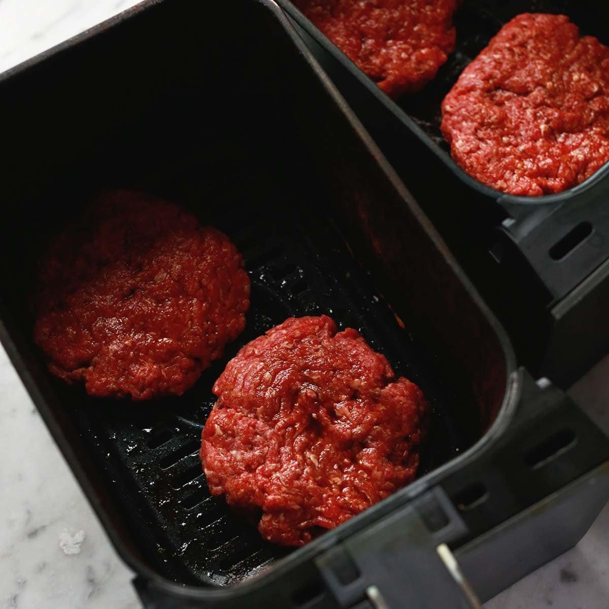 This air fryer hamburger recipe is a great one to top with homemade Big Mac sauce, Chick-fil-A sauce, BBQ sauce (my favorite!) or Buffalo sauce if your feeling spicy.