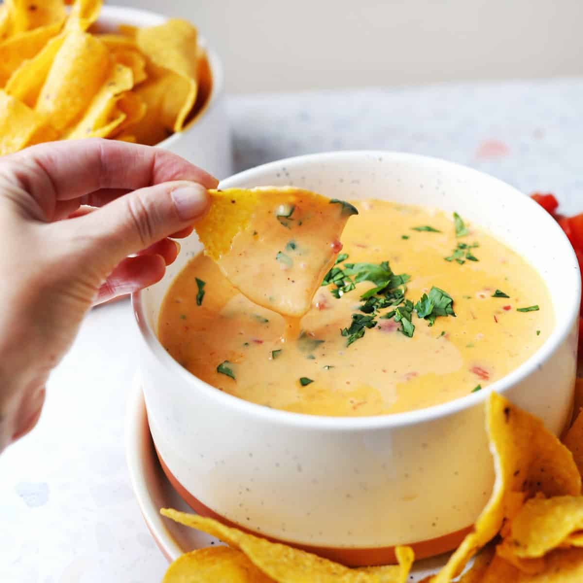 a quick and easy cheese dip recipe made from Velveeta cheese