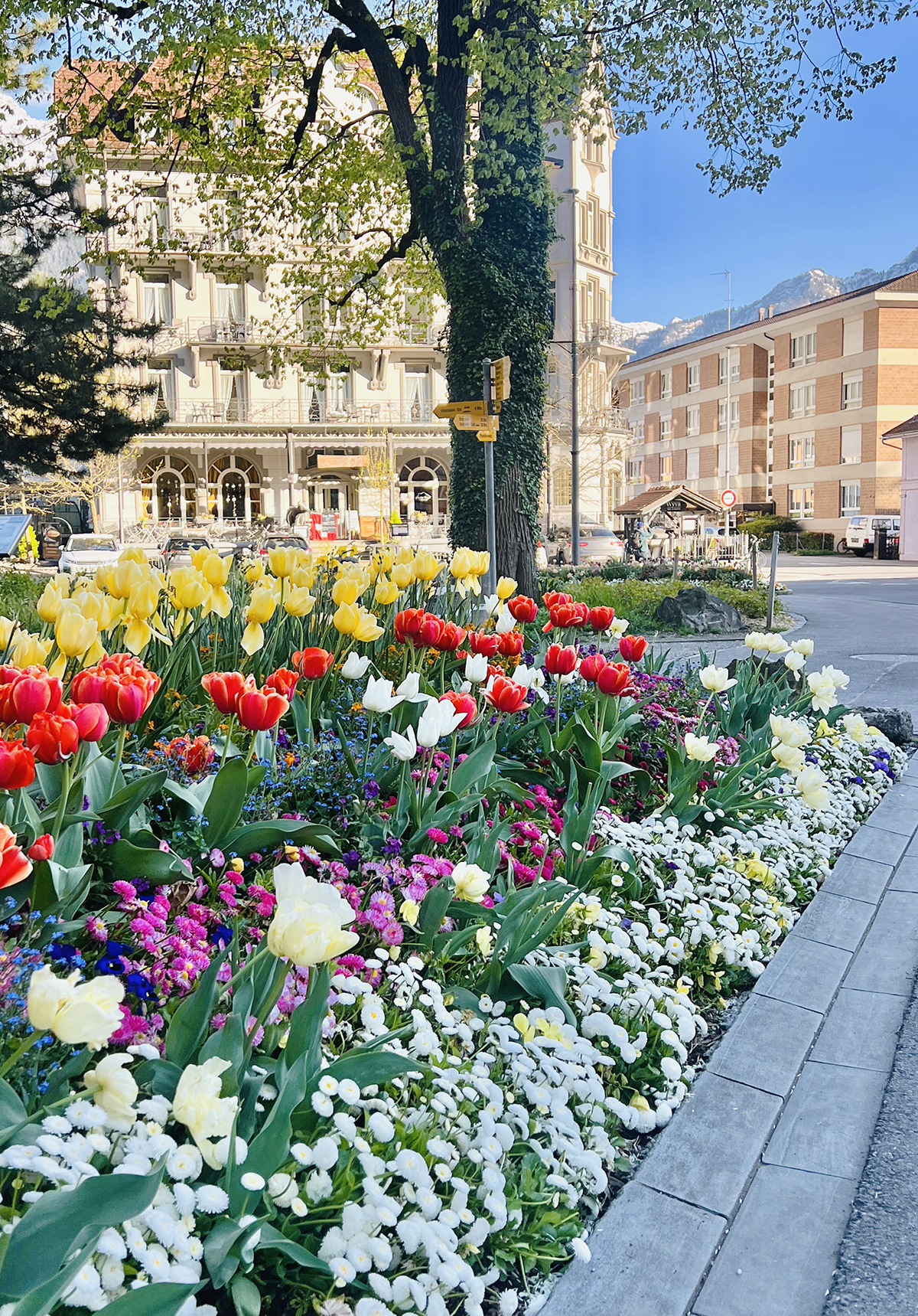 I couldn’t let spring pass this year without sharing a few inspirational photos and our route though the country in the last week of April. Warning: gratuitous flower photos ahead! Our trip took us via train from Zurich, through Bern, down to Interlakken, then down to Lugano on the border of Italy (with a 48 hour visit to the Lake Region to stay in Bellagio on Lake Como) then back to Lucern by train and ferry and returning to Zurich by train for our departure. We didn’t have time on this trip to wander over to the French side to see the region around Lake Geneva, but I’d been there before many years ago.