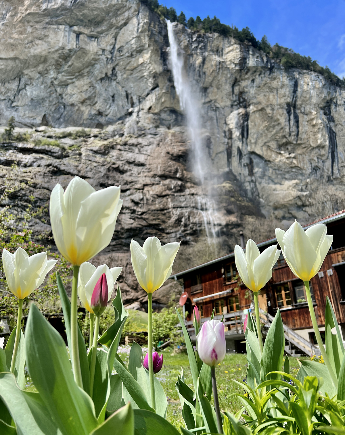 We certainly arrived in Interlakken at the perfect time in the last week of April, the snow had just melted in the valley the week before. (Although if your ride the funicular up the mountain to Harder Kulm, the seasons switches from spring to winter in ten minutes.) A leisurely stroll through the valley takes your breath away as you make your way past waterfalls and the happiest cows. The walk takes you all the way to Trümmelbach Falls where you can witness the spectacular site of a waterfall inside of a mountain.
