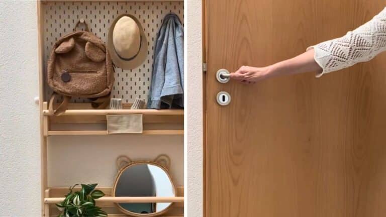 Every inch counts in small spaces. This clever hack utilizes dead space behind doors for shallow storage. Absolutely perfect for an entryway drop zone, cleaning supplies, or bathroom essentials.