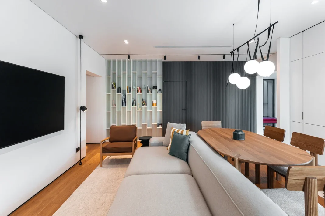 Before its transformation, the apartment was a blank canvas: functional but uninspired. The rooms felt disconnected, and the light struggled to travel through the narrow layout. The kitchen, though already modern in shape, lacked warmth. Raw finishes, incomplete cabinetry, and scattered materials revealed a space mid-transition, waiting for purpose.