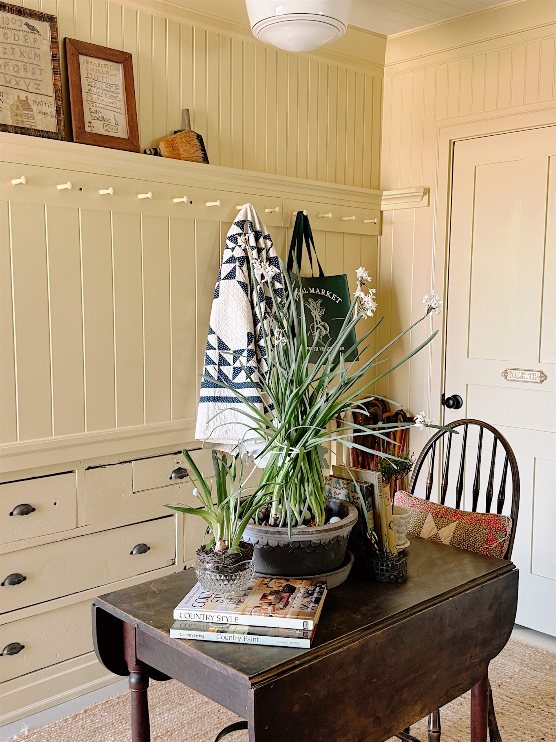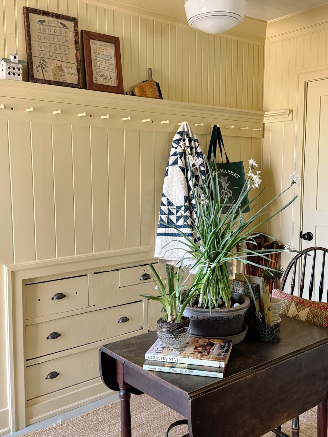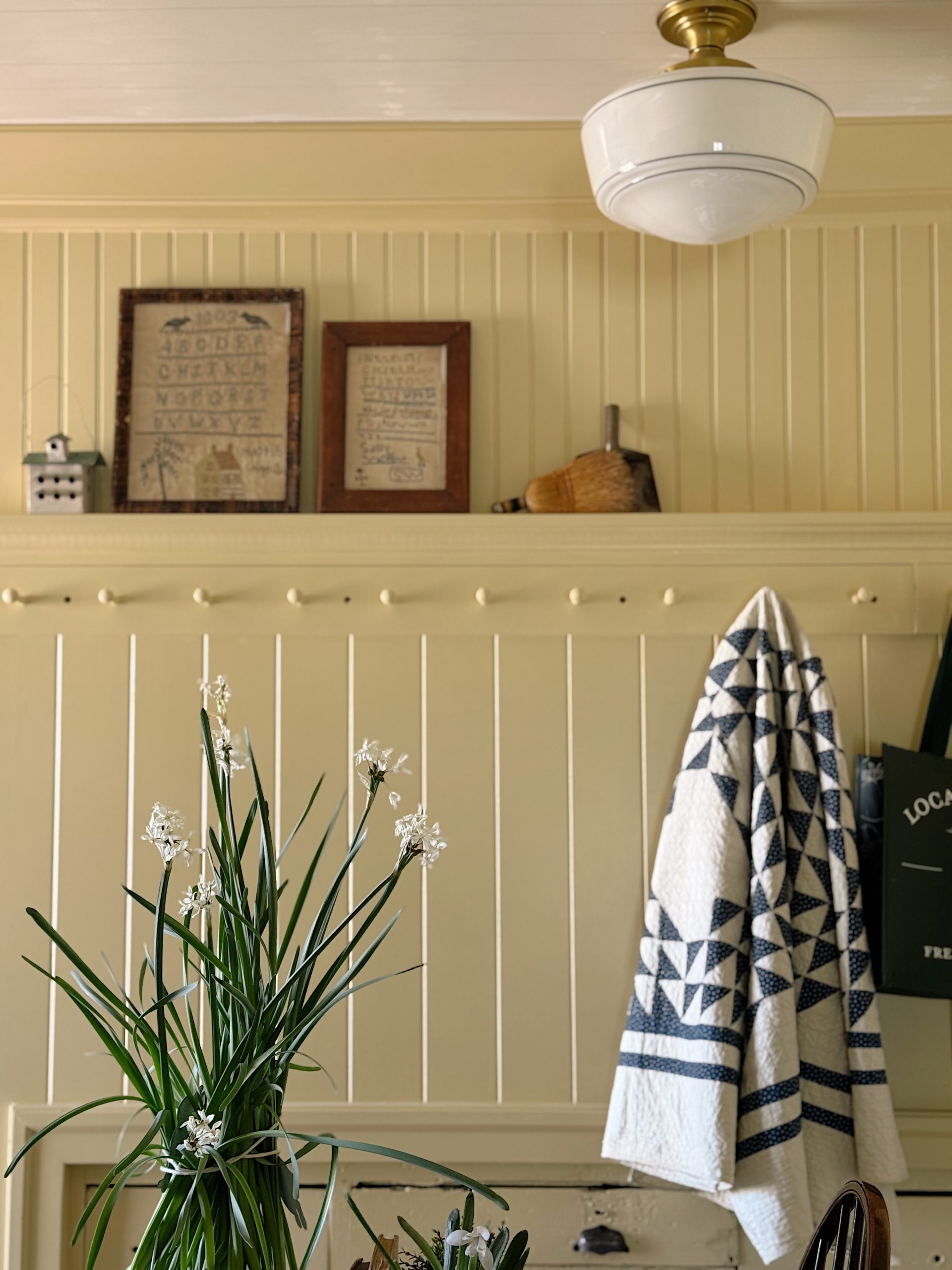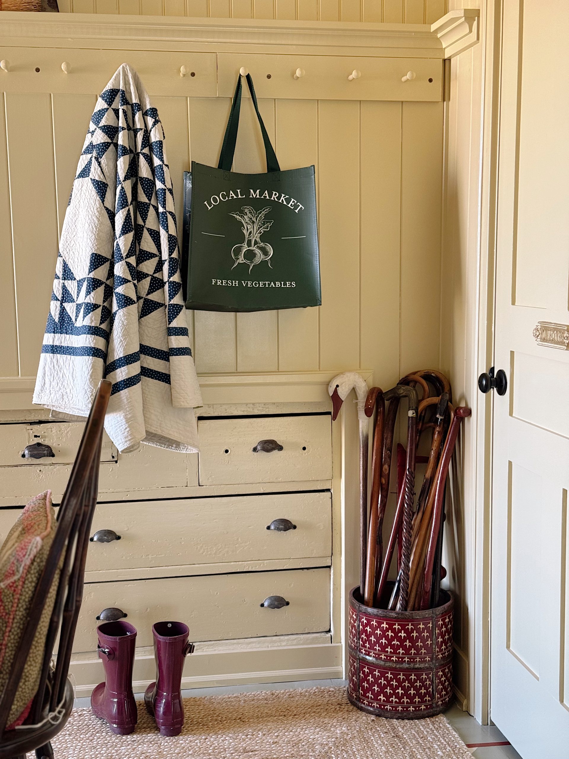 Our mudroom has always been a functional space—a catch-all for coats, boots, and the occasional muddy paw print. However, I envisioned it as more than just a pass-through area. By applying Hay No.37 to the walls, the room instantly transformed into a cozy retreat that warmly welcomes us home each day.