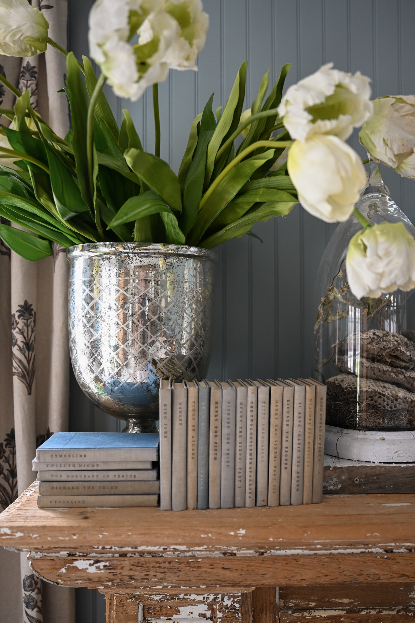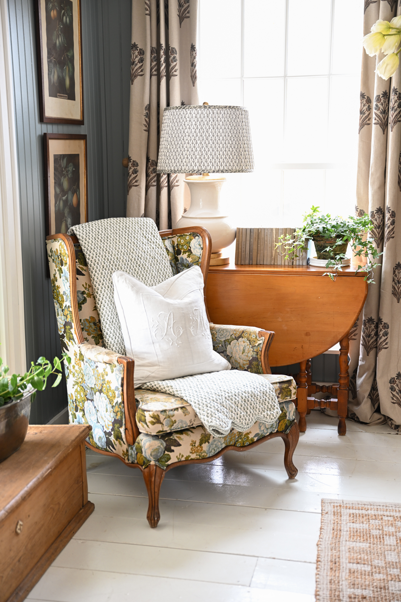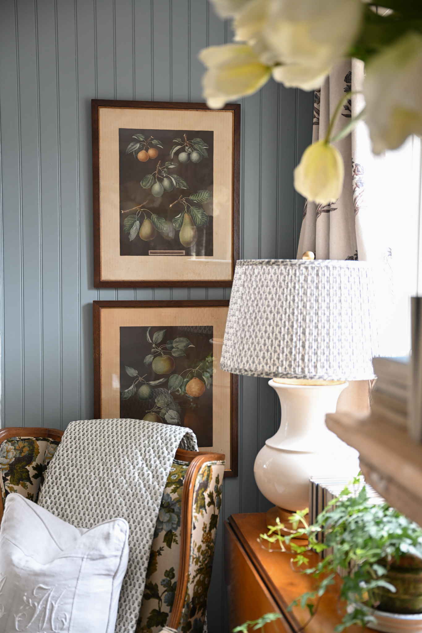 I’m so excited to share a recent transformation in our cozy cottage—the front living room has been given a fresh new look with a beautiful shade of blue. We chose Farrow & Ball’s De Nimes, but to achieve a lighter, more personalized touch, we had it mixed at 50% lighter.