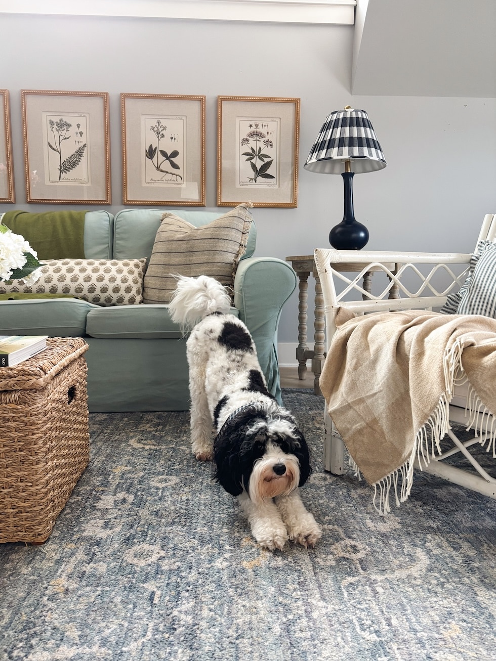 The rug was our dining room rug for a long time, and now it’s up here. I love the color and pattern — and it’s not so crazy heavy that we can’t move it on a whim.